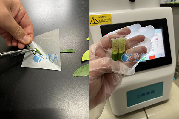 實(shí)驗(yàn)器材:上海凈信全自動(dòng)樣品快速研磨儀主機(jī),柑橘葉脈1克,5M不銹鋼珠2顆,2ML研磨管