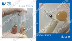1. How to use Jingxin Tissuelyser in combination with liquid nitrogen to disrupt tissue cells | 2. Test method for grinding pig muscle tissue with tissuelyser animal tissue grinder |