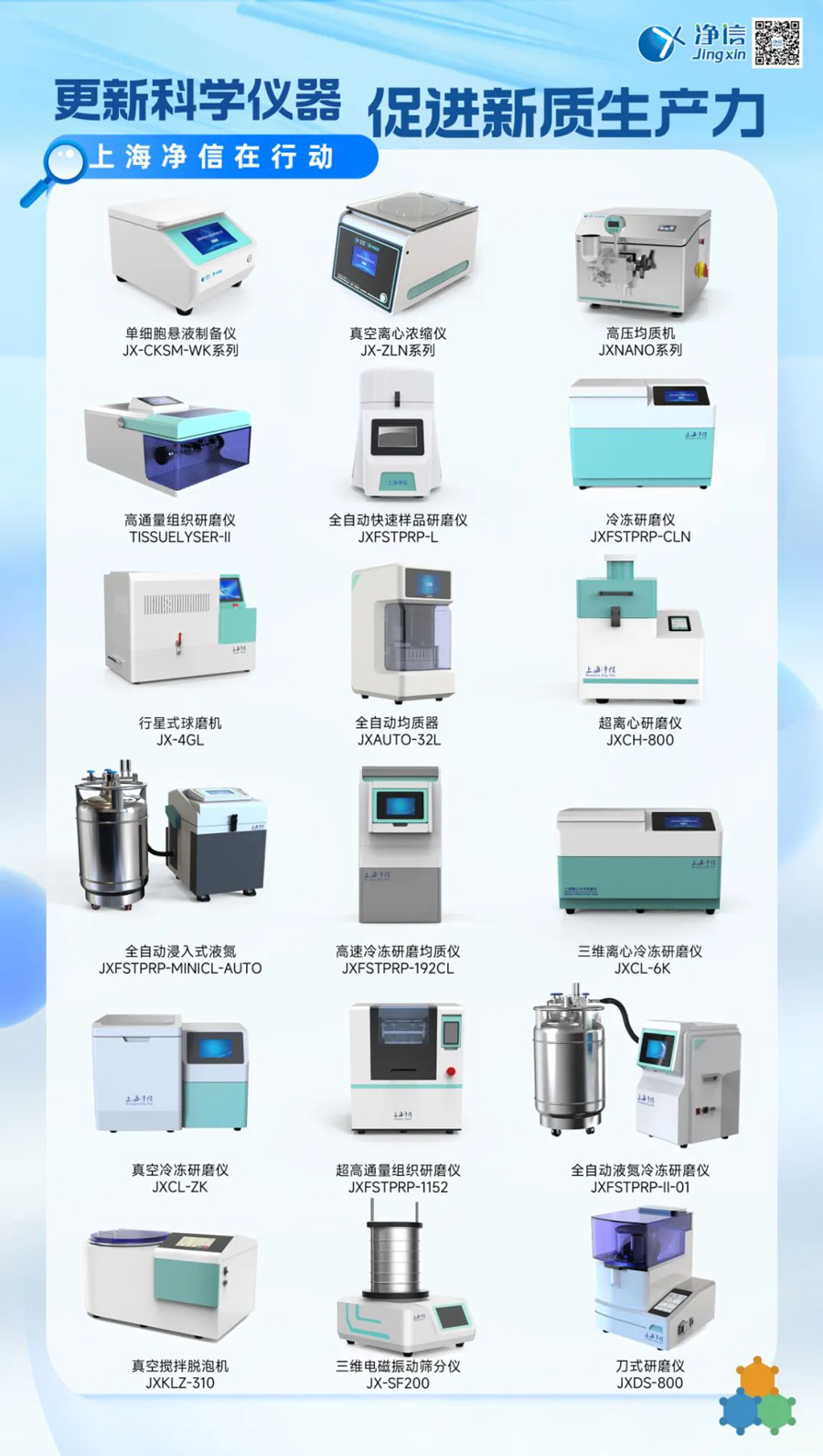 在國(guó)家大規(guī)模設(shè)備以舊換新的政策推動(dòng)下,上海凈信積極響應(yīng),推出了一系列優(yōu)質(zhì)的實(shí)驗(yàn)室前處理設(shè)備,助力科研工作者提升實(shí)驗(yàn)效率,推動(dòng)科研創(chuàng)新。上海凈信的實(shí)驗(yàn)室前處理設(shè)備涵蓋了樣品破碎、混合、分散、均質(zhì)化等多個(gè)環(huán)節(jié),能夠滿足不同實(shí)驗(yàn)室的多樣化需求。
