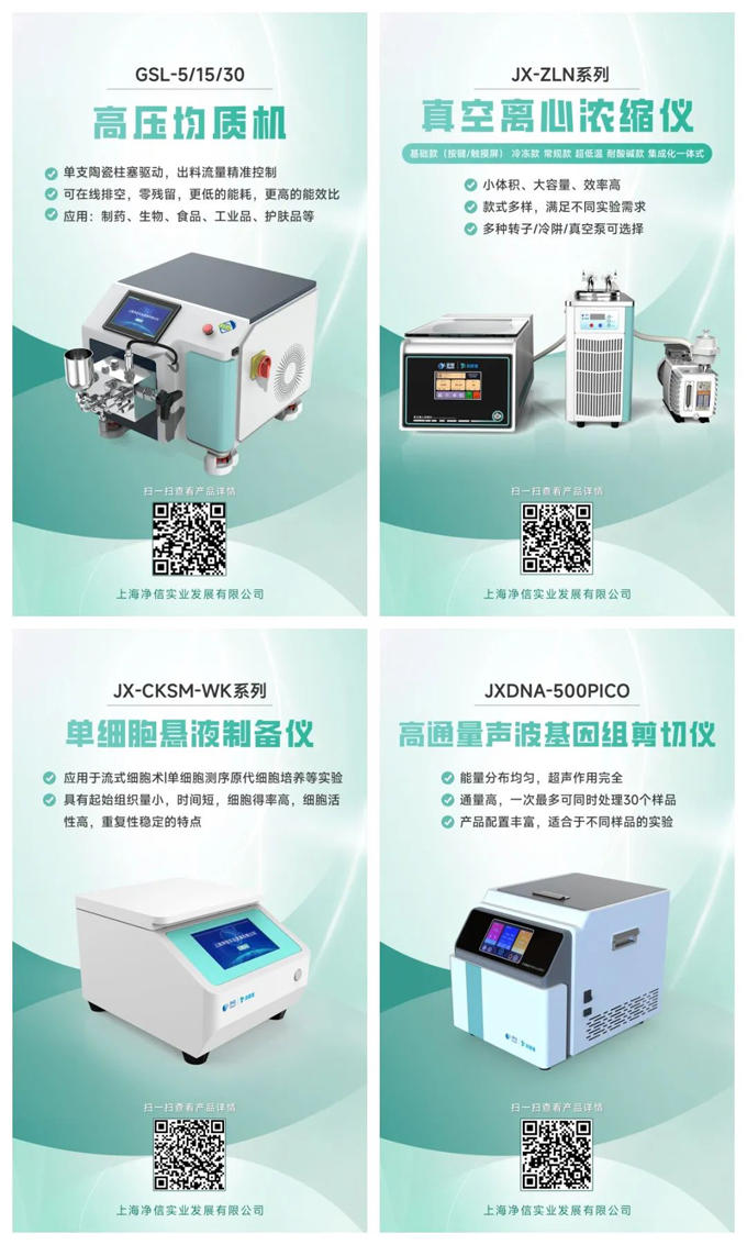 上海凈信科研者系列產(chǎn)品的上市推廣,包括真空離心濃縮儀、高壓均質(zhì)機、單細胞懸液制備儀、高通量聲波基因組剪切儀等,標(biāo)志著公司從單一產(chǎn)品向多元化發(fā)展的轉(zhuǎn)變,拓展了市場影響力。更是了體現(xiàn)了上海凈信在實驗室設(shè)備領(lǐng)域的專業(yè)性和技術(shù)實力,能夠滿足不同科研和工業(yè)應(yīng)用的需求。
